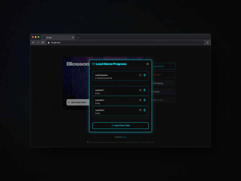 Blossoming is currently in-development, alongside the game engine (Petals) that powers it. Blossoming is due to release in Fall 2025.